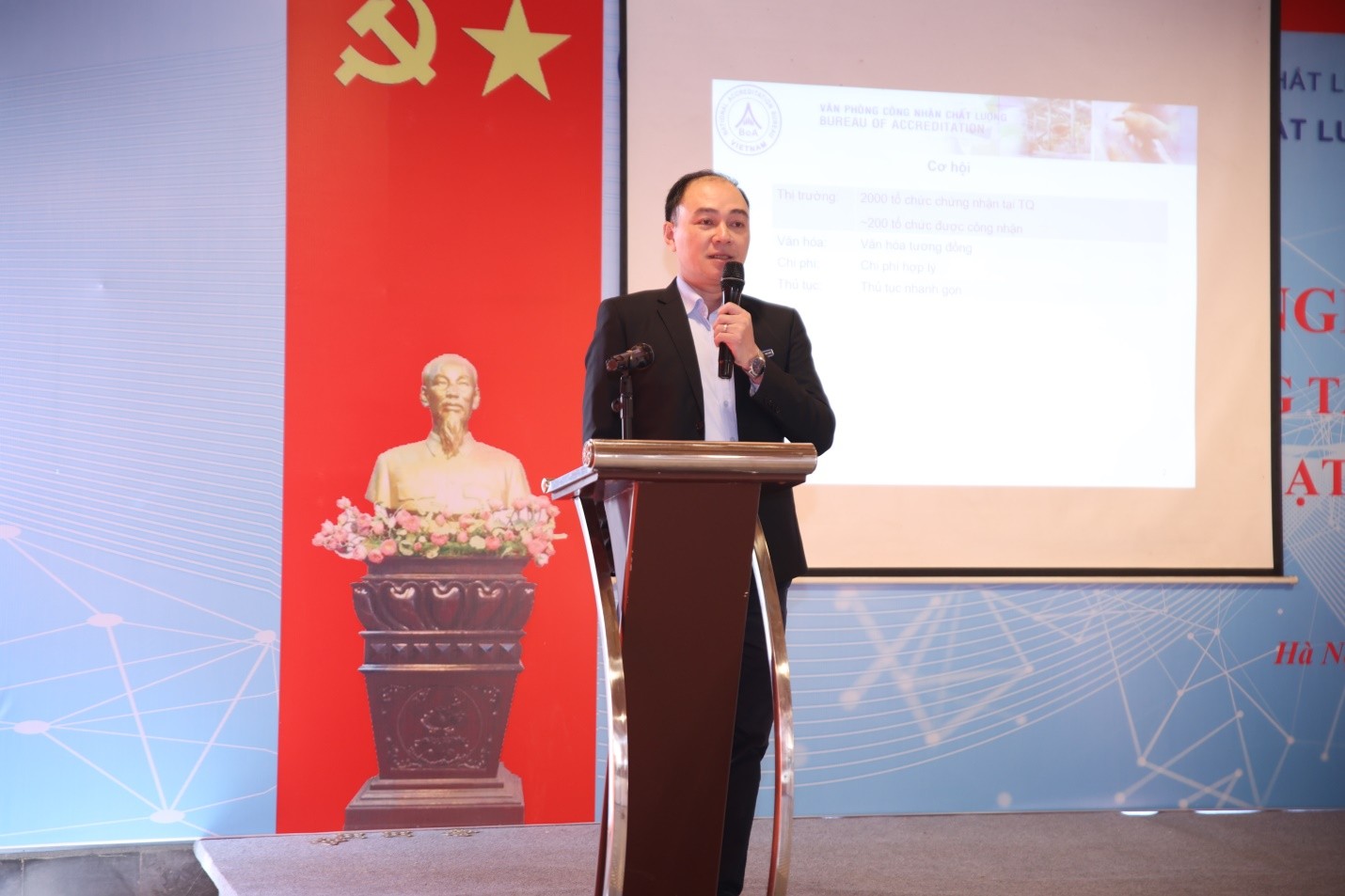 Bà Nguyễn Thị Mai Hương – Trưởng ban Ban Quản lý Chất lượng và Đánh giá sự phù hợp phát biểu tại Hội nghị