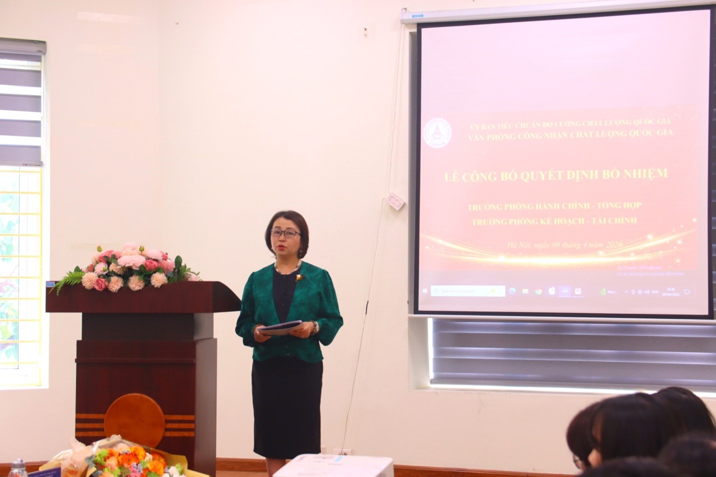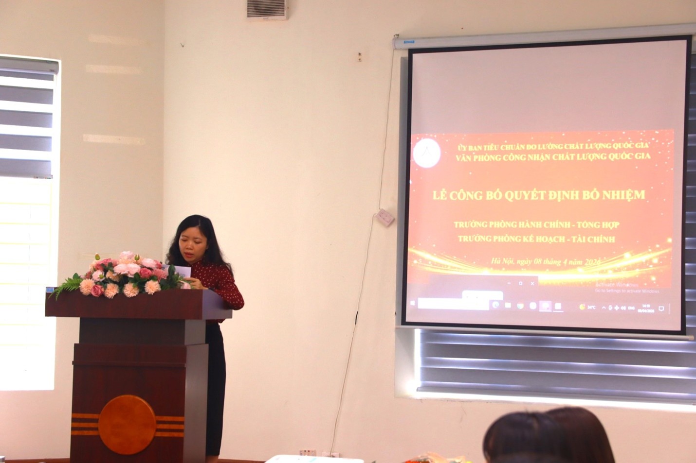 Văn phòng Công nhận chất lượng quốc gia công bố Quyết định bổ nhiệm Trưởng phòng Hành chính – Tổng hợp và Trưởng phòng Kế hoạch – Tài chính