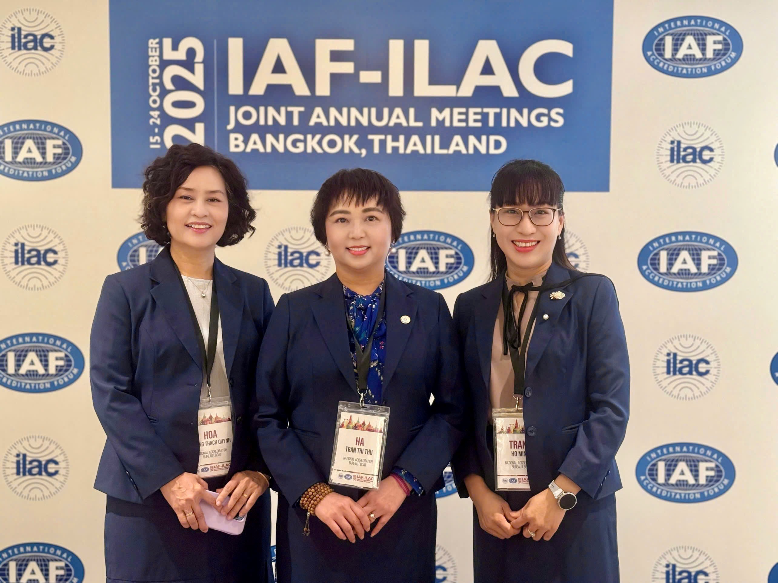 Năm nay Hội nghị thường niên của IAF/ILAC được tổ chức từ 15-24/10/2025 tại Bangkok, Thái Lan. Tham dự hội nghị có hơn 300 chuyên gia từ các cơ quan công nhận quốc gia, các tổ chức công nhận khu vực và quốc tế, đại diện các Hiệp hội liên kết và các đối tác chiến lược. Đoàn Việt Nam do Bà Trần Thị Thu Hà – Giám đốc Văn phòng Công nhận Chất lượng Quốc gia cùng các cán bộ lãnh đạo ở các phòng chuyên môn tham dự.